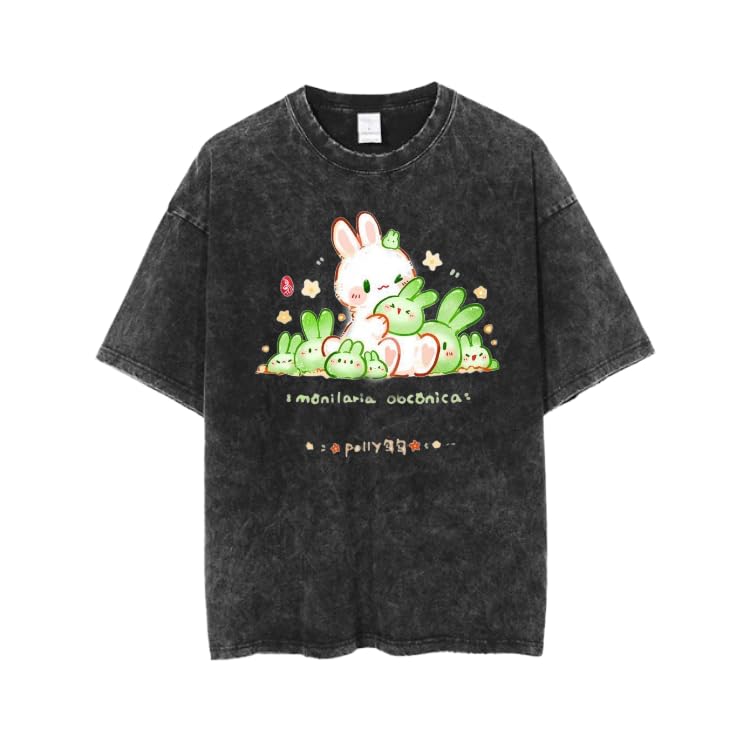 Generic - washed gray t-shirt bunny rabbit cute kawaii oversize 7