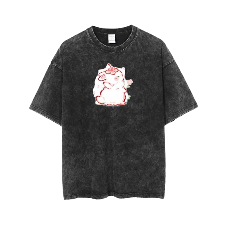 Generic - washed gray t-shirt bunny rabbit cute kawaii oversize 80