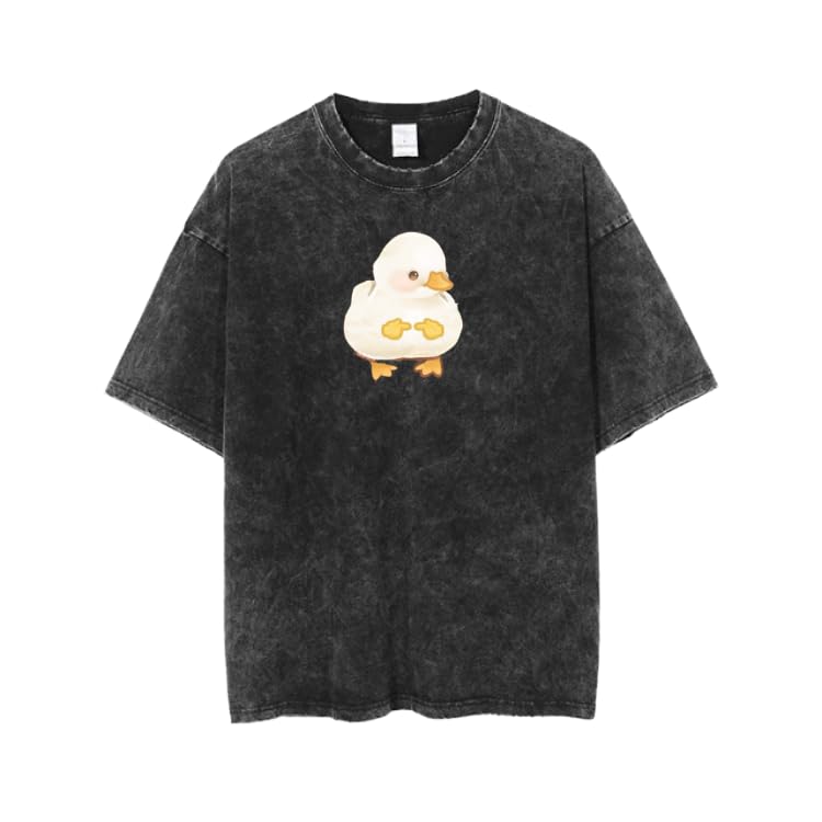 Generic - تي شيرت رمادي باهت بتصميم بطة لطيفة مقاس كبير 19