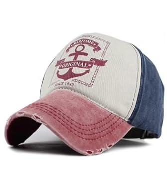 Generic - كاب مغسول بتصميم ثلاثي الألوان، قبعة بيسبول عتيقة، وردي وأزرق وبيج