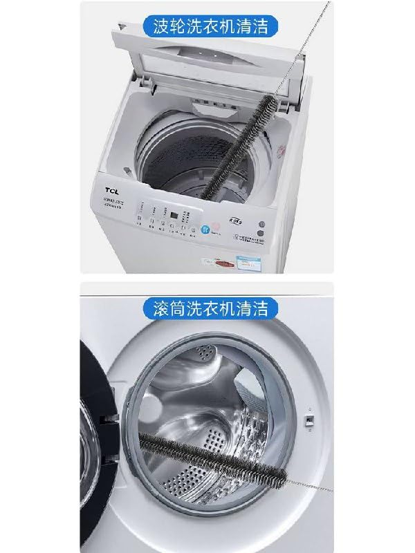 Generic - فرشاة تنظيف غسالة لفك انسداد وتنظيف الأحواض، مجموعة تنظيف الفتحات ولفائف الثلاجة المرنة الطويلة والمكنسة الكهربائية