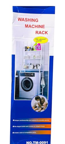 - رفوف تخزين معدنية لغسالة الملابس، لون أبيض.