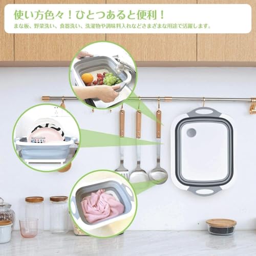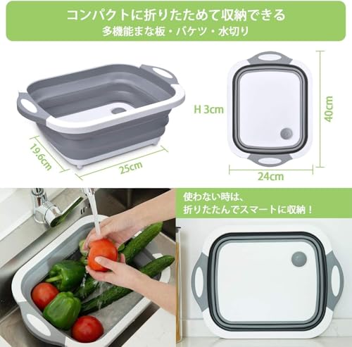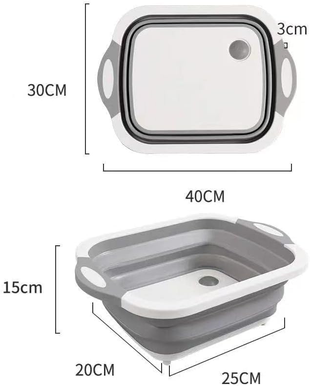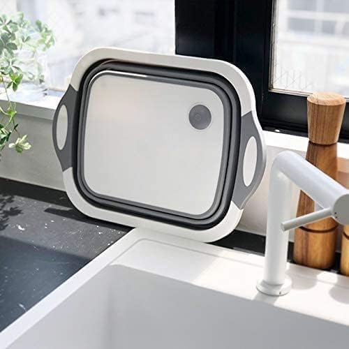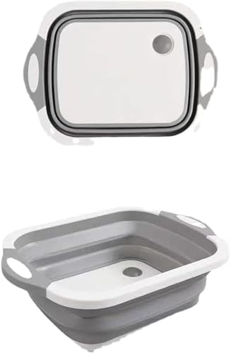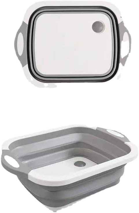 Hummosk - حوض غسيل قابل للطي، لوح تقطيع بخاصية تصريف، دلو مزود بمقبض بسعة كبيرة، حوض غسيل متعدد الوظائف، آمن وعديم الرائحة لتخزين مريح للمطبخ والأماكن الخارجية (رمادي)