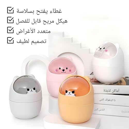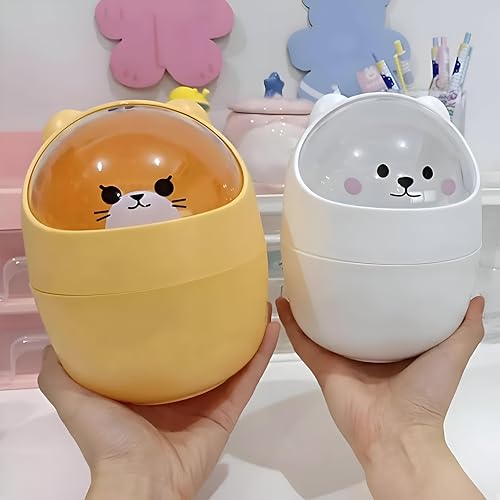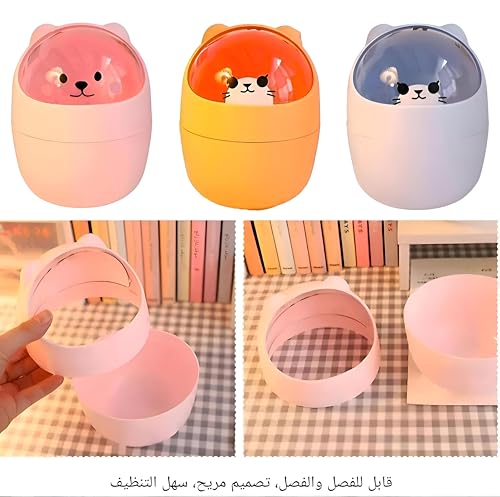Generic - سلة مهملات - سلة مهملات بلاستيكية صغيرة الحجم مع غطاء رائع على شكل دب، مثالية للمنازل والمطابخ والمكاتب والمساحات الصغيرة للحفاظ على النفايات مخفية بأناقة مع تصميم ملون انيق