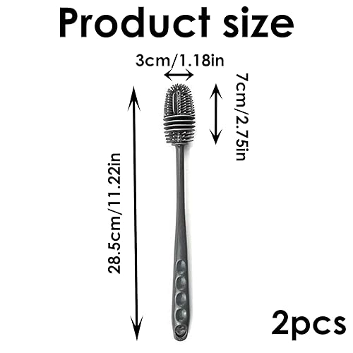 Wasuqo - فرشاة غسل زجاجات، فرشاة تنظيف برأس من السيليكون مع مقبض طويل، للأباريق والقوارير الحرارية مع فتحة ضيقة، قطعتين