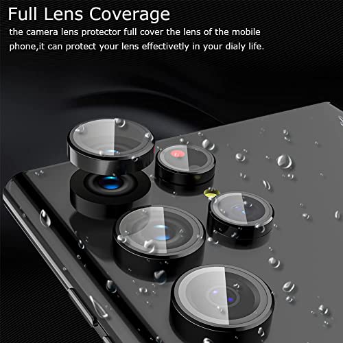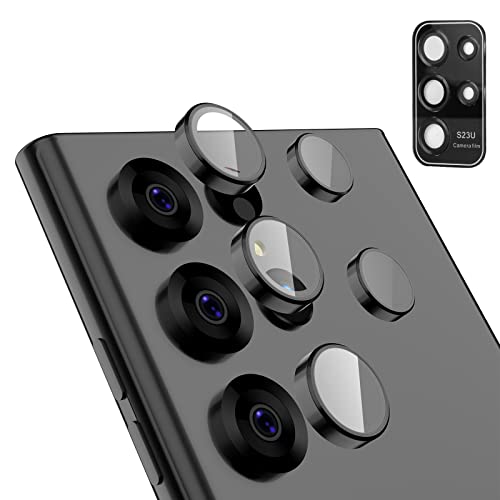 WATACHE - واقي حلقي لحماية عدسة كاميرا موبايل جالاكسي S23 الترا من الزجاج المقوى الكاميرا الخلفية خليط معدني الالومنيوم لموبايل سامسونج S23 واتاشي اسود
