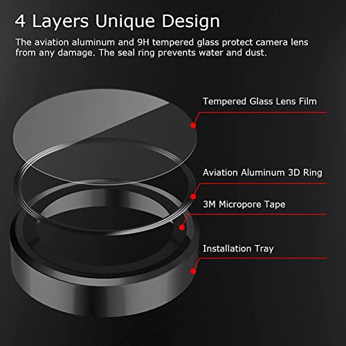 - 【غطاء حلقي لعدسة الكاميرا من الألومنيوم】- واقي الكاميرا الخلفية مصنوع من خليط معدني من الألومنيوم + زجاج مقوى، يوفر تغطية كاملة ويحمي الكاميرا من الصدمات. خفيف الوزن ومقاوم للغبار ومقاوم للماء ولن يؤثر على استخدام جراب الموبايل.