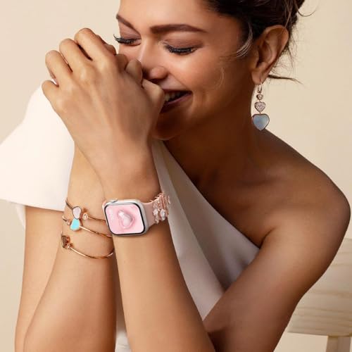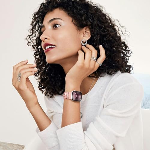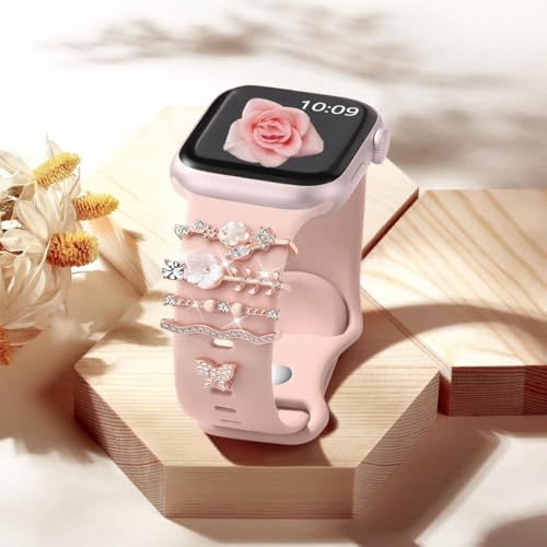 fashion mania - مجموعة دلايات سوار الساعة، سوار رياضي من السيليكون محفور بالزهور وحلقات حلقية مزخرفة