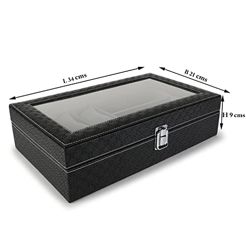 - تصميم واسع: يمكنه حمل ما يصل إلى 6 ساعات و3 نظارات شمسية، مما يوفر حيزًا وافيًا لتنظيم وحفظ الاكسسوارات النفيسة.
