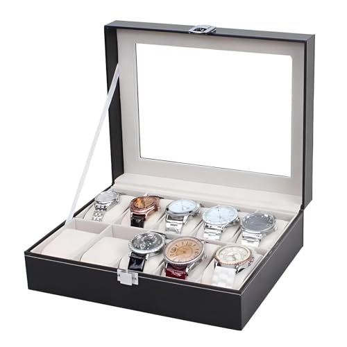 Generic - صندوق جامع الساعات - استمتع بعلبة التخزين ذات الـ 12 فتحة مع سطح زجاجي أصلي، مثالية لعرض وتنظيم ساعاتك، مما يجعلها الهدية المثالية لعشاق الساعات