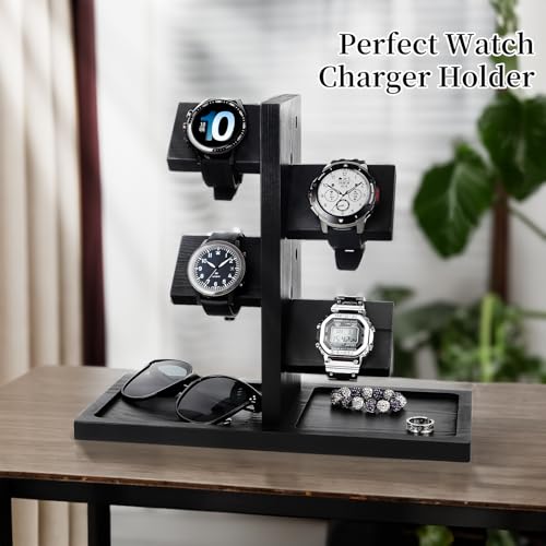 Kechmnew - حامل ساعة وقاعدة شحن، منظم مجوهرات لعرض الساعات والخواتم والسلاسل والعملات المعدنية للرجال والنساء