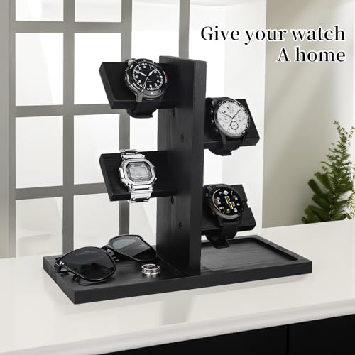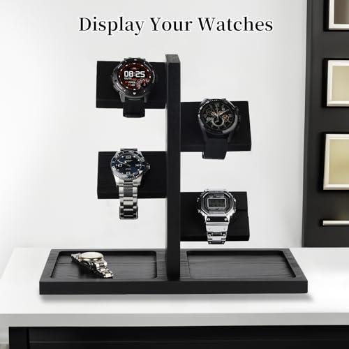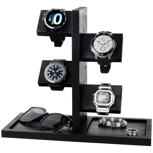 - 【حامل ساعة متعدد الوظائف】يتميز حامل الساعات المتعدد الخاص بنا بتصميم برج مثالي حيث يمكنك الاحتفاظ بالساعات والخواتم والعملات المعدنية والأساور. يمكنه حمل ما يصل إلى 12 ساعة وعرضها بشكل جيد، لحمايتها من أي نوع من التلف والخدوش.
