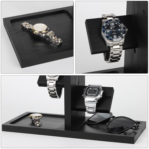 - 【حامل ساعات ومجوهرات خشبي】 مصنوع من الخشب الصلب الطبيعي، حامل الساعات هذا قوي ومتين. السطح الخشبي الناعم بلمسة نهائية جيدة لن يخدش ساعاتك ومجوهراتك ويحافظ عليهم بسهولة.