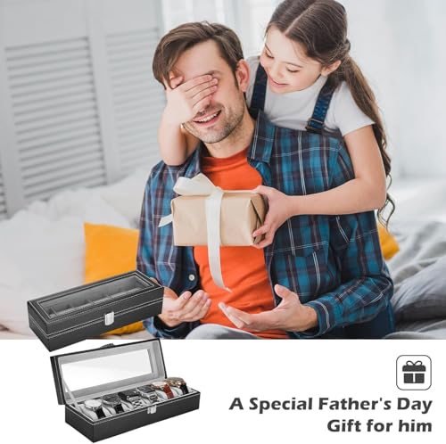 Generic - منظم ساعات بـ 12 و 10 و 6 فتحات لعرض الساعات مع غطاء زجاجي، صندوق ساعات للرجال، صندوق مجوهرات من جلد البولي يوريثين الاسود (6 فتحة)