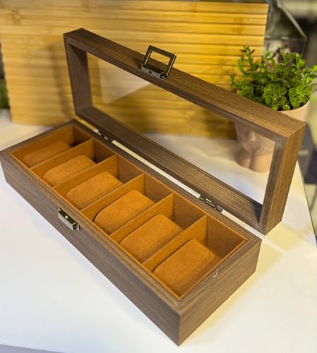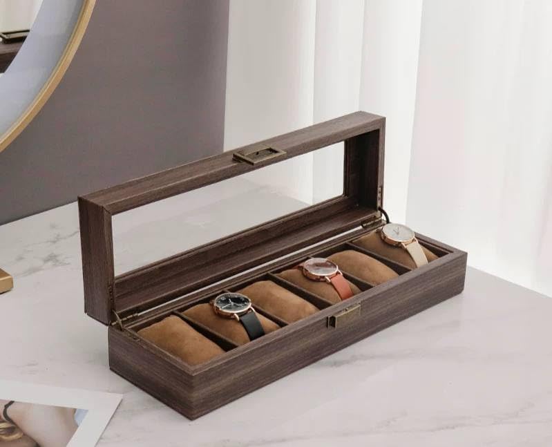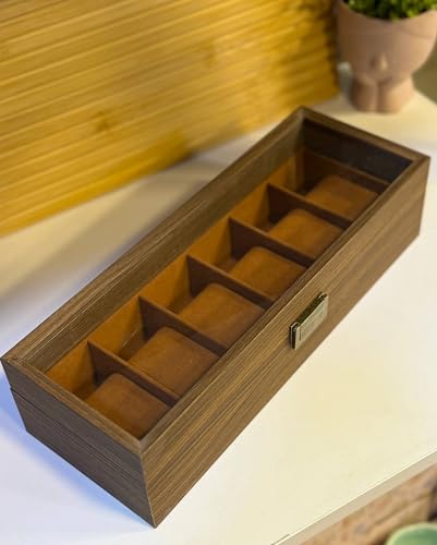 - منظم ساعات مقسم إلى 6 خانات يساعد على ترتيب الساعات اليدوية بشكل منفصل ويمنع التزاحم داخل مساحة التخزين.