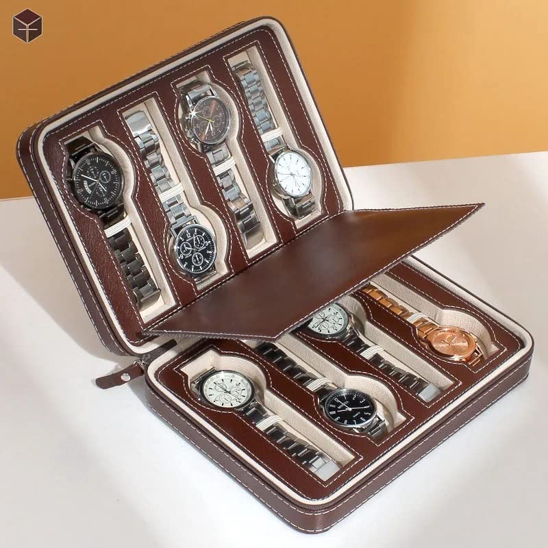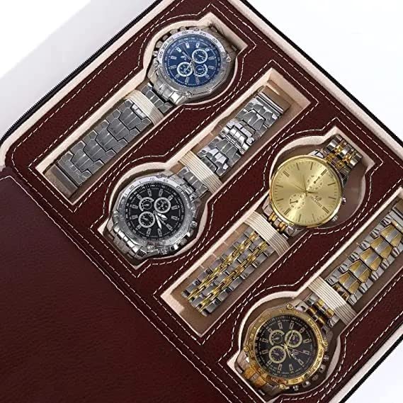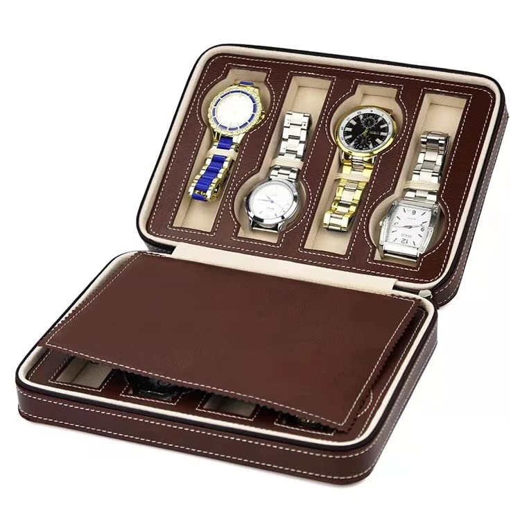 Generic - حافظة تخزين للساعات للسفر بسحاب من جلد البولي يوريثين 8 فتحات عالية الجودة، متعدد الالوان