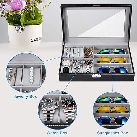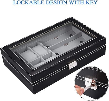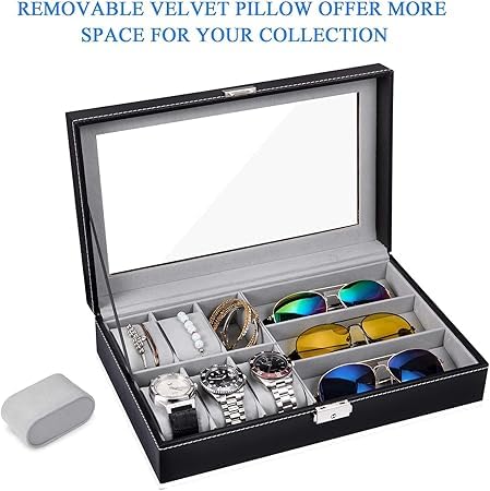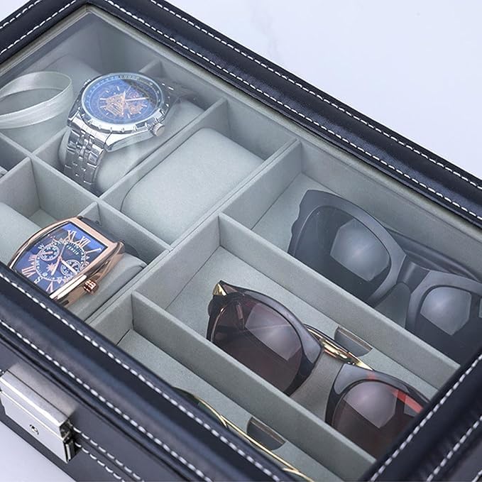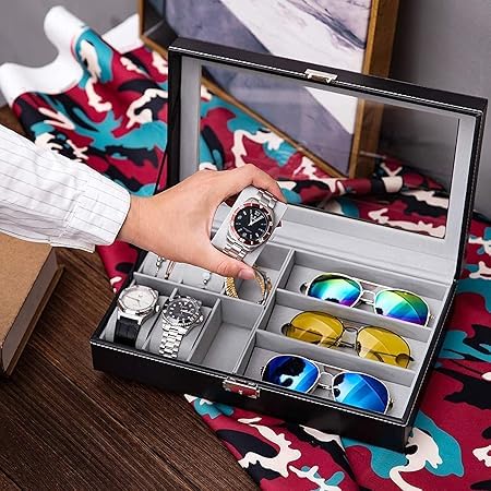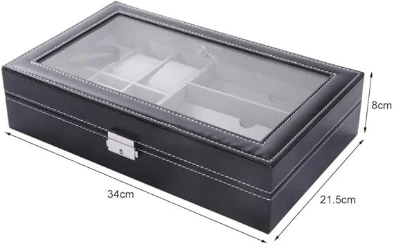 Generic - صندوق مجوهرات للرجال، شنطة عرض نظارات ومنظم ساعات من الجلد الصناعي مع نافذة عرض شفافة، (موديل 1)