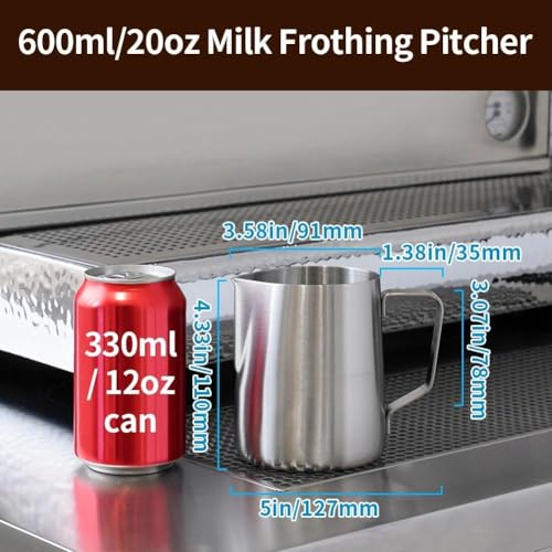 watchget - ووتش جيت ابريق صنع رغوة الحليب من الستانلس ستيل سعة 20 اونصة/600 مل - ابريق تبخير الاسبريسو للكابتشينو وفن اللاتيه، ملحقات ماكينة القهوة، ابريق حليب وكوب صانع رغوة القهوة، فضي غير لامع