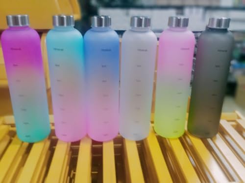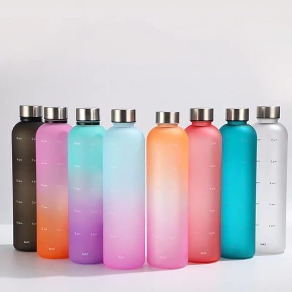 Generic - زجاجة ماء سعة 1 لتر بلاستيك مقاوم للتسرب بغطاء معدني محكم – تصميم أنيق متعدد الألوان مع تدريج لمراقبة كمية الشرب اليومية