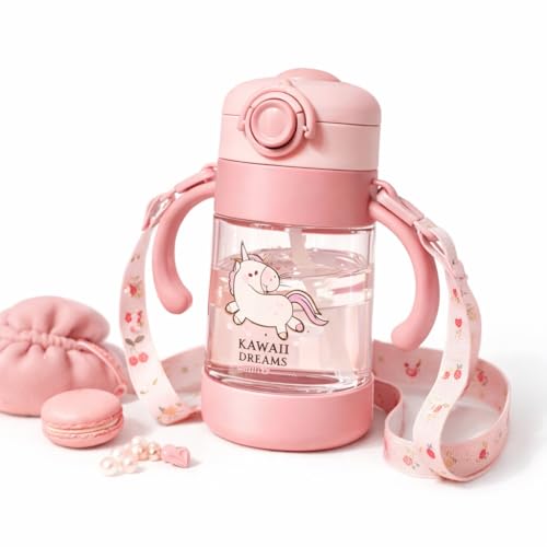 Generic - زجاجة مياه سعة 360 مل من الاكريليك بلون وردي قابلة لإعادة الاستخدام مع شفاطة، غطاء مانع للتسرب، خالية من مادة بيسفينول أ، تصميم خفيف الوزن