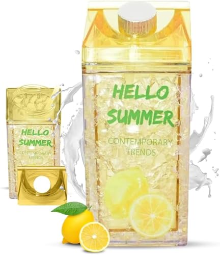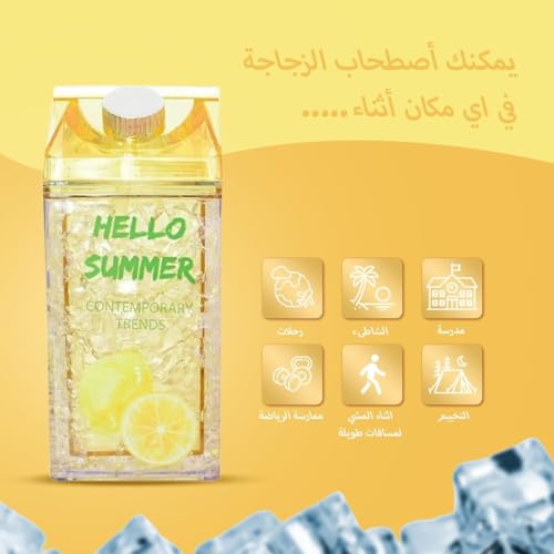 Generic - زجاجة مياه 400 مل - كوب ثلج مع ماصة مزدوجة وغطاء مانع للتسرب، خالية من BPA، زجاجة مياه رياضية للسفر والمدرسة والمنزل، متينة وأنيقة للمشروبات الباردة المثلجة (اصفر)