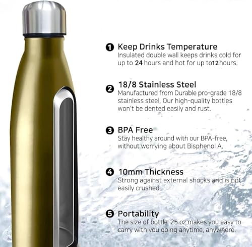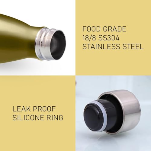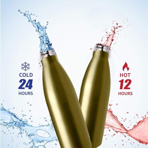 Generic - زجاجة مياه من الفولاذ مقاوم للصدأ بجدار مزدوج عازل بتفريغ الهواء، زجاجة مياه رياضية مانعة للتسرب للمشروبات الساخنة والباردة، خالية من مادة بيسفينول أ، عازلة لانتعاش يدوم طويلًا، 500 مل