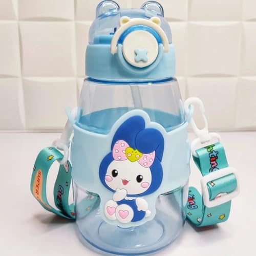 Generic - زجاجة مياه، كوب أكريليك صحي مع ماصة، زجاجة بسعة كبيرة خالية من مادة بيسفينول أ، محمولة ومتينة، تصميم كرتوني للمدرسة والتسوق والرياضة والسفر والترطيب اليومي، سعة 550 ملليلتر، لون (أزرق)