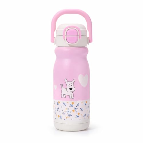 Generic - زجاجة مياه سعة 550 مل - كوب سفر معزول من الستانلس ستيل مع مقبض وماصة، مانعة للتسرب للمشروبات الساخنة والباردة، كوب محمول للمكتب وصالة الالعاب الرياضية والسفر والسيارة، F-1541 (بينك)