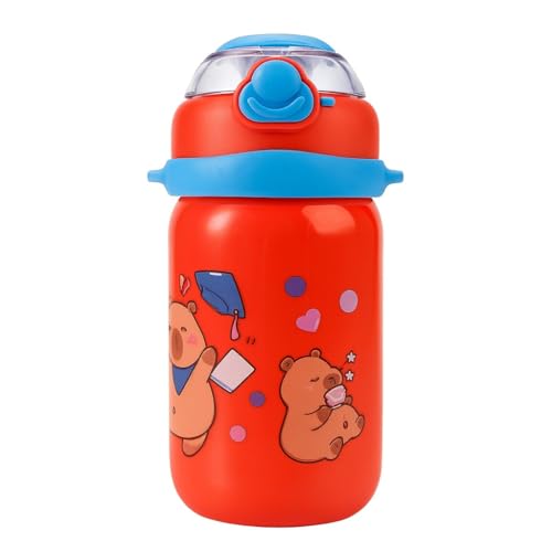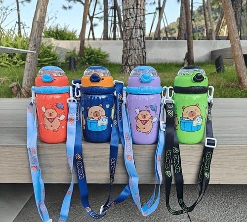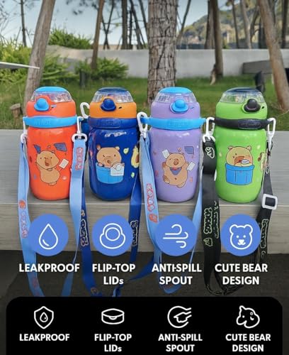 Generic - زجاجة مياه سعة 600 مل - ماصة وحزام مقاومة للتسرب وخالية من BPA وسهلة التنظيف للمدرسة والسفر والنزهات والاستخدام المنزلي، تصميم لطيف (برتقالي)
