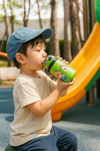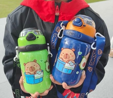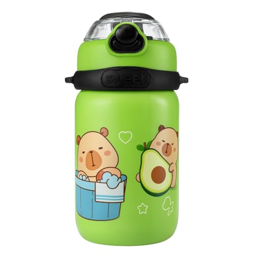 Generic - زجاجة مياه سعة 600 مل - ماصة وحزام مقاومة للتسرب وخالية من BPA وسهلة التنظيف للمدرسة والسفر والنزهات والاستخدام المنزلي، تصميم لطيف (اخضر)