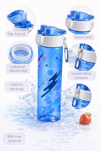 Generic - زجاجة مياه رياضية قابلة لإعادة الاستخدام خالية من مادة بيسفينول أ بتصميم مقاوم للتسريب مناسبة للطلاب والجيم والاستخدام اليومي، أزرق، سعة 650 مل