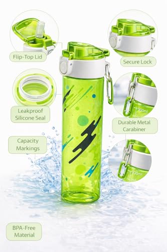 Generic - زجاجة مياه رياضية 650 مل خالية من مادة بيسفينول أ قابلة لإعادة الاستخدام بتصميم مانع للتسرب للطلاب وفي الجيم وللاستخدام المنزلي (أخضر)