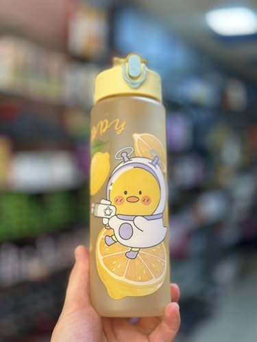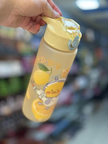 Generic - زجاجة مياه بتصميم حيوانات كرتونية مع فوهة قابلة للطي وغطاء علوي قلاب، زجاجة خالية من مادة بيسفينول أ مع فلتر مدمج للسفر والمدرسة والجيم واللياقة البدنية في الأماكن الخارجية، 700 مل، أصفر