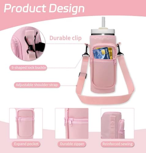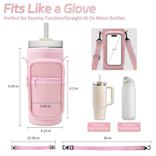 Doacpcr - حقيبة حمل زجاجة المياه مع جيب للهاتف لكوب ستانلي سعة 40 اونصة - متوافقة مع مقبض 40 اونصة/كوب مستقيم، حقيبة حمل زجاجة المياه مع حزام قابل للتعديل، اكسسوارات اكواب ستانلي (بينك)
