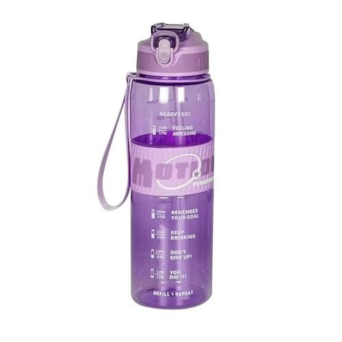 Generic - زجاجة مياه من بلاستيك صحي مع شفاطة وحزام، زجاجة ماء رياضية قابلة لإعادة الاستخدام للمدرسة والجيم والمكتب والتمرين من رنا ستور، لون موف - قطعة واحدة