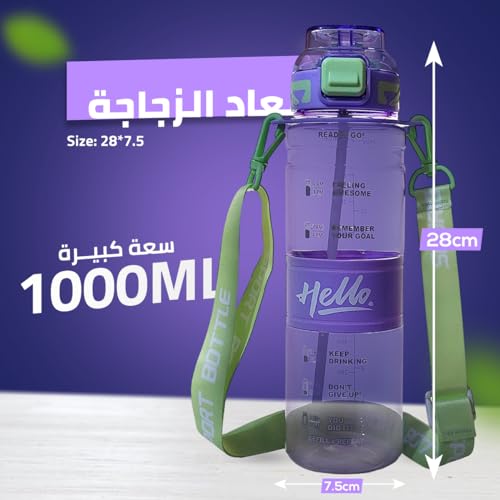 - متينة وموثوقة: مصنوعة من مواد عالية الجودة وخالية من البيسفينول ايه، زجاجة المياه هذه بسعة 1 لتر متينة ومصممة لتحمل الاستخدام اليومي. يضمن هيكلها المتين طول العمر والمرونة ضد الصدمات.