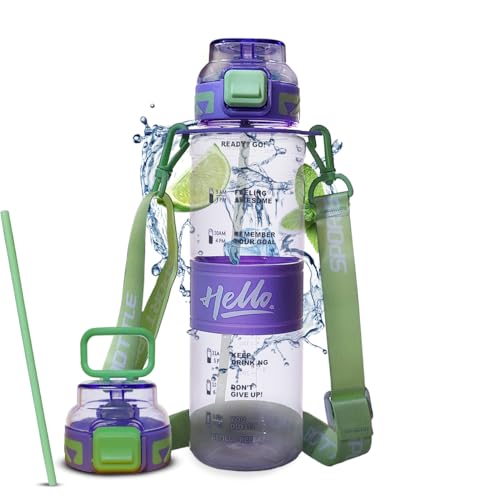 Hanso 1 - زجاجة مياه رياضية مانعة للتسرب مع ماصة، زجاجة شرب محمولة عصرية ومتينة لصالة الالعاب الرياضية واللياقة البدنية مع حزام، خالية من البيسفينول ايه، 1 لتر (ارجواني)