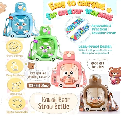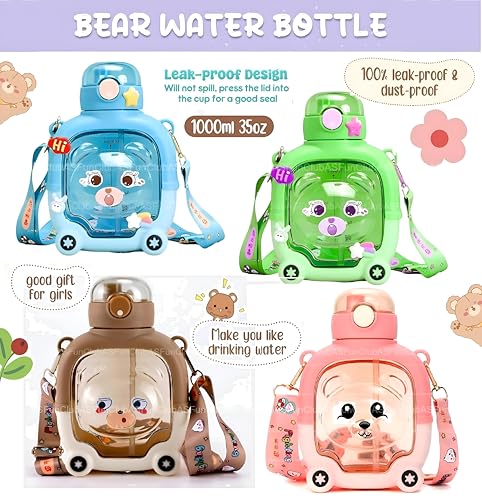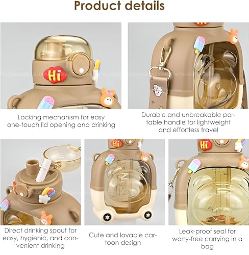 - ✪ زجاجة مياه لطيفة للأطفال مع ماصة مع غطاء حزام كتف قابل للتعديل والإزالة مصممة بحلقة مطاطية مانعة للتسرب، مما يضمن عدم تسرب الماء أثناء عملية الاهتزاز.