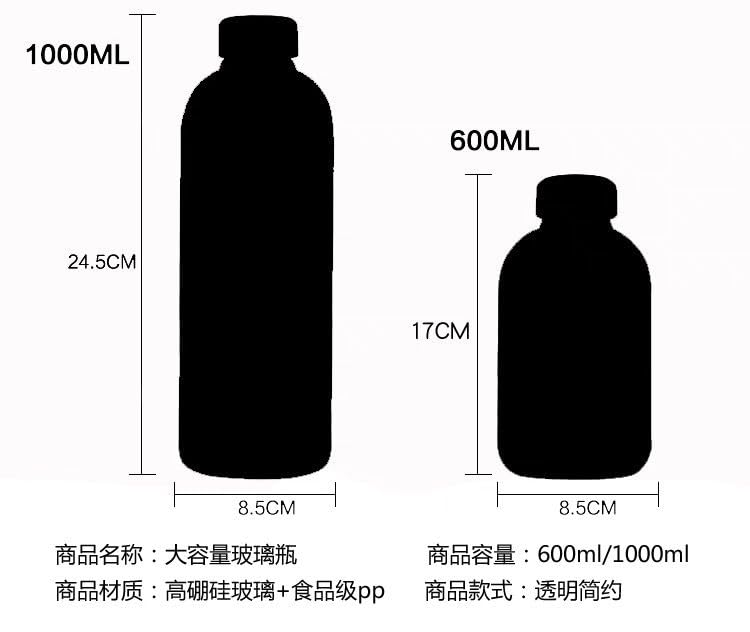 Generic - زجاجة مياه - زجاجة شرب زجاجية قابلة لاعادة الملء للتخلص من السموم واللياقة البدنية والاستخدام اليومي - 1000 مل