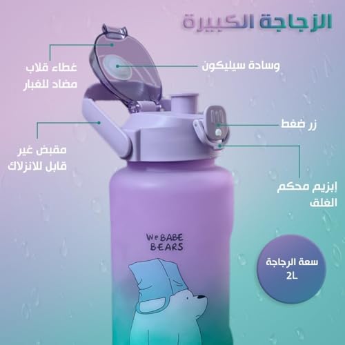 - ابق رطبًا دون تفكير: زجاجة المياه هذه بسعة 2 لتر مع ماصة وعلامات زمنية واضحة تدفعك إلى الشرب في الموعد المحدد - سواء كنت ترفع في صالة الألعاب الرياضية أو عالقة في اجتماعات المكتب أو تسافر أثناء التنقل أو في نزهة على طول النيل.