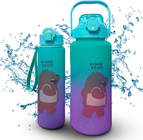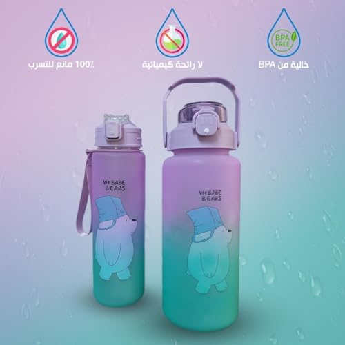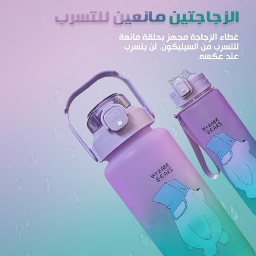 Generic - مجموعة زجاجات مياه رياضية مضادة للتسرب سعة 2 لتر مع مؤشر للوقت لصالة الالعاب الرياضية والسفر والمكتب والاماكن الخارجية، زجاجة شرب تحفيزية سعة 800 مل من قطعتين