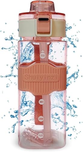 Generic - زجاجة مياه مع فلتر خالية من مادة بيسفينول أ ومانعة للتسرب وقابلة لإعادة الاستخدام مع محدد وقت الشرب وشفاطة، زجاجة مياه مثالية للجيم والسفر والمنزل، 550 مل، (لون وردي)