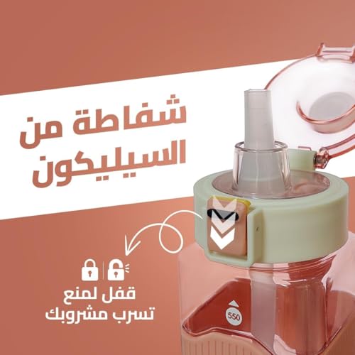 - مزودة بعلامات لتحديد وقت شرب المياه: يساعدك مؤشر وقت الشرب على تتبع كمية المياه التي تتناولها، مما يضمن لك ترطيب جسمك طوال اليوم.