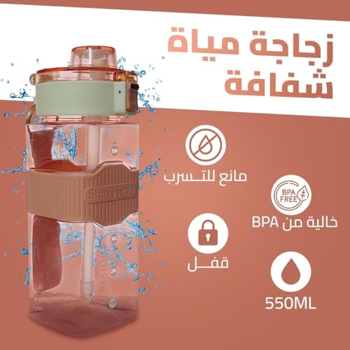 - تصميم متين ومريح: زجاجة مياه سعة 550 مل بمقبض قوي، تتميز بتصميم مثالي سهل الحمل أثناء التمارين أو السفر أو الاستخدام اليومي في المنزل.