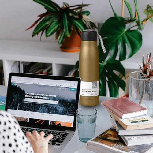 Generic - زجاجة مياه حرارية بجدار معزول بتقنية التفريغ الهوائي من الفولاذ المقاوم للصدأ للمشروبات الساخنة والباردة، زجاجة مانعة للتسرب خالية من البيسفينول أ قابلة لإعادة الاستخدام للسفر والرياضة، 500 مل (ذهبي)