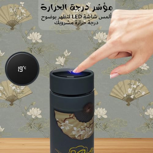 Generic - زجاجة مياه، كوب معزول من الفولاذ مقاوم للصدأ مع شاشة رقمية لدرجة الحرارة، 500 مل، زجاجة مياه مع مصفاة قابلة للإزالة، مصفاة للشاي والقهوة والفاكهة (رمادي غامق)