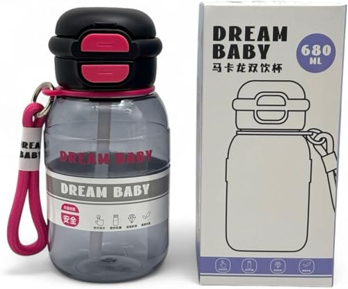 Generic - زجاجة مياه بفتحتين مع شفاطة، زجاجة رياضية أكريليك شفافة مانعة للتسرب بسعة 680 مل مع فوهة واسعة، مناسبة للمدرسة والرياضة والعمل (لون أسود)
