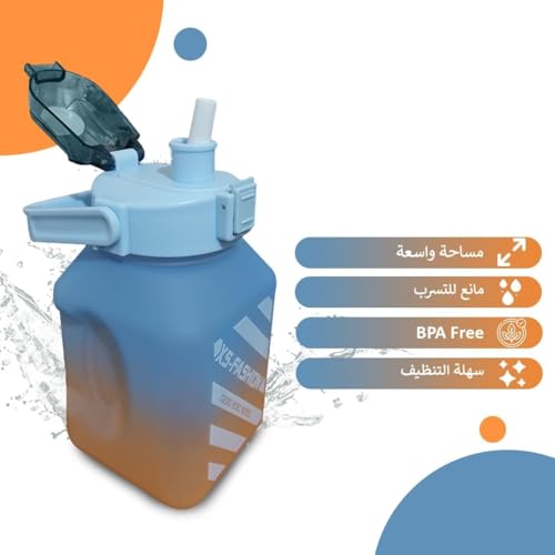 - ابق على اطلاع بترطيبك مع زجاجة المياه هذه بسعة 1.5 لتر مع شفاطة وعلامات للوقت. يحافظ التصميم المانع للتسرب على شنطتك جافة، بينما تدفعك العلامات الشفافة إلى الشرب طوال اليوم - مثالية لجلسات صالة الألعاب الرياضية وساعات العمل والسفر والمشي في الهواء الطلق على طول الكورنيش.