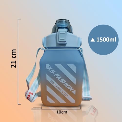 Generic - زجاجة مياه مع شفاطة - زجاجة مياه رياضية مانعة للتسرب سعة 1.5 لتر مع مؤشر وقت لصالة الألعاب الرياضية والسفر والمكتب والأماكن الخارجية، زجاجة شرب تحفيزية 1500 مل (أزرق وبرتقالي)