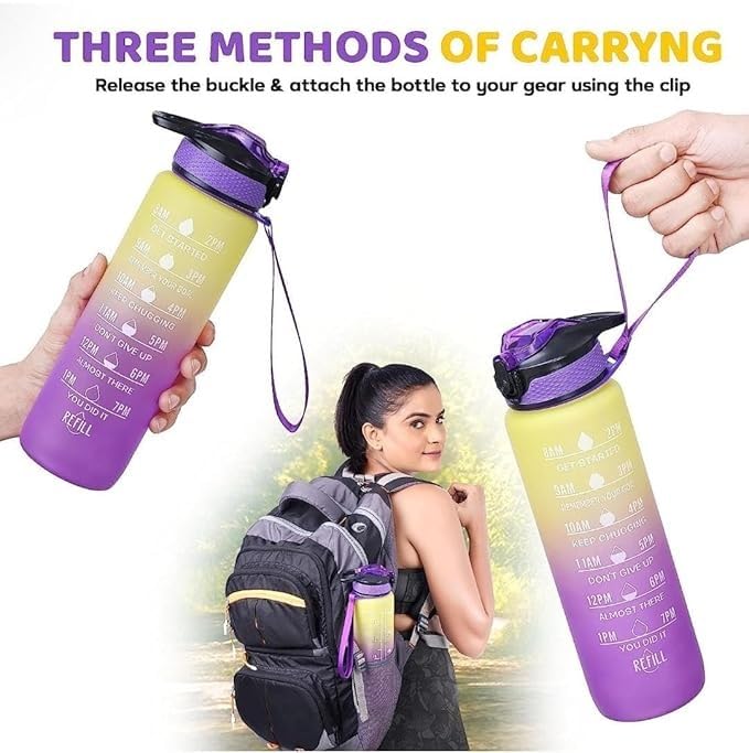 Generic - زجاجة مياه رياضية متينة سهلة الحمل سعة 1 لتر مع شفاطة ومقبض حمل مقاومة للتسرب وخالية من البيسفينول أ لصالة الألعاب الرياضية والسفر والمدرسة (لون أرجواني)